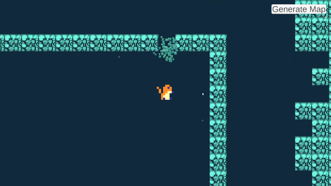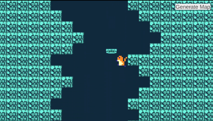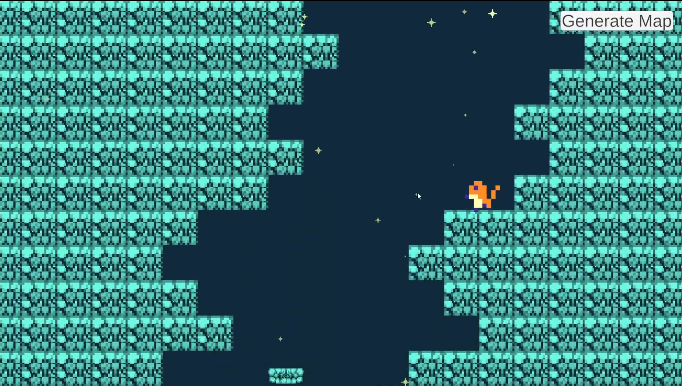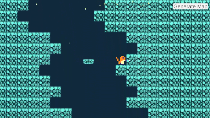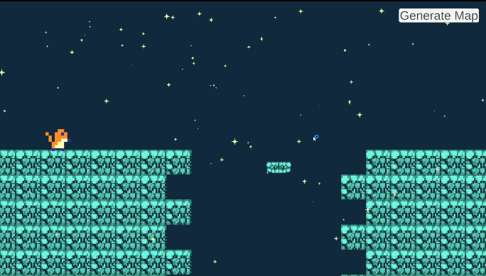 This was a project for Procedural Generation. The goal of the project was to create a game level using my own algorithm. We were expected to pitch the idea to our instructor. My idea was based on the game Downwell, which is a roguelike vertical scrolling shooter game, in which the player traverses down a procedurally generated well, using their gunboots to protect them from danger. For the walls, I used a random walk algorithm to trace a path down a well and fill the surrounding space with walls while placing platforms along the walker's path. I than cut out doorways on the map's edges to connect rooms. I took this project further by adding a mario style player controller with a buttslam mechanic, a camera controller, music and sound effects. When I have time to continue working on this, I'd like to give the rooms some more interesting variation.