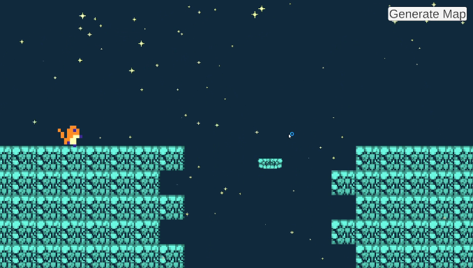 A 2D randomly generated level using my own algorithm.